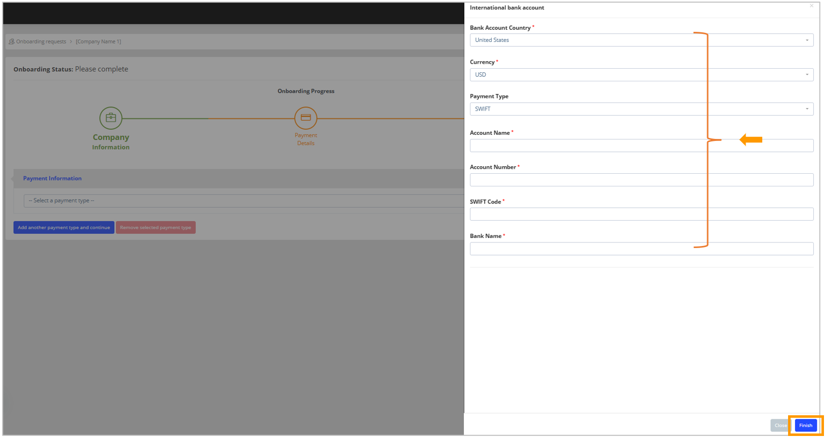 Here is a step-by-step guide on how a new international supplier will complete an onboarding form.